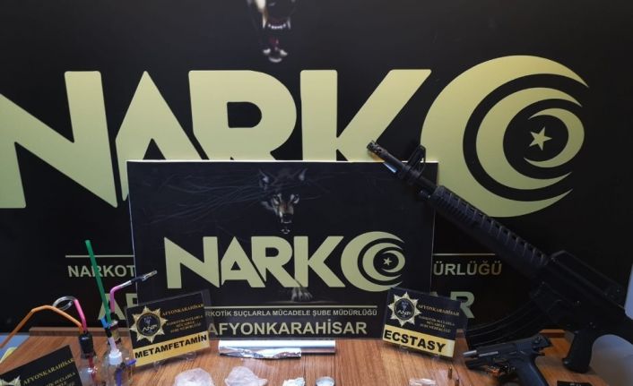 Afyonkarahisar İl Emniyet Müdürlüğü ekipleri uyuşturucu ile mücadele kapsamında çalışmalarına devam ediyor. Bu çerçevede gerçekleştirilen operasyonda, satışa hazır 8 pakette 10,12 gram metamfetamin, 3 adet ecstasy hap, 1 adet hassas terazi, 4 adet uyuşturucu madde kullanma aparatı, 1 adet uyuşturucu madde paketlemede kullanıldığı değerlendirilen alüminyum folyo, 1 adet ruhsatsız tabanca, 7 adet tabanca fişeği, ile 1 adet ruhsatsız tüfek ele geçirildi.