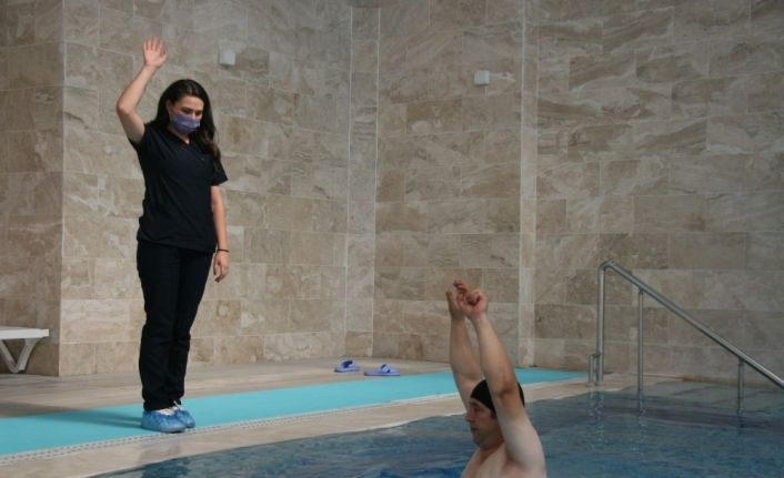 Eklem ve romatizmal hastalıkları olanlar ve şifa için geldikleri Oruçoğlu Termal Otel de fizyoterapistler eşliğinde egzersiz yaparak rahatlıyorlar.