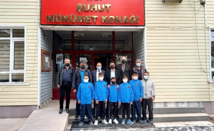 Afyonkarahisar’ın Şuhut ilçesini güreş müsabakalarında temsil edecek 5 sporcu Şuhut Kaymakamı Erkan Kaçmaz, sporcu aileleri ve protokol üyelerinin katılımlarıyla uğurlandı.