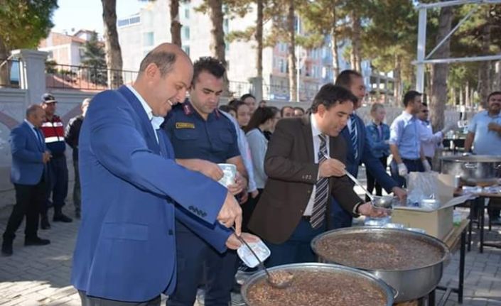 Kaymakam Kaya ve Başkan Bozkurt kendi elleriyle öğrencilere aşure dağıtarak bu ayın hayırlara vesile olmasını temenni etti. Öğrenciler ise Kaymakam Kaya ve Başkan Bozkurt ile beraber hatıra fotoğrafı çektirdi.