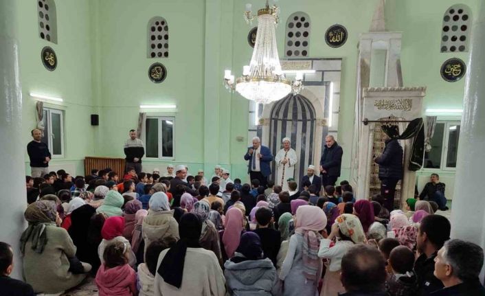 Kurtuluş İlkokulu ile ortaklaşa düzenlenen programda, Kur’an Kursu Camii çocukların neşesi ve coşkusuyla adeta bir çiçek bahçesine dönüştü. Öğrenciler, öğretmenler ve velilerin yoğun katılım gösterdiği program, yatsı namazının hep birlikte eda edilmesiyle başladı. Namazın ardından cami safları, çocukların heyecanı ve sevinciyle doldu.