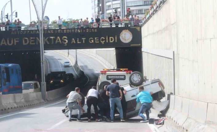 Kaza, kent merkezindeki Rauf Denktaş Alt Geçidi’nde meydana geldi. Edinilen bilgilere göre, A.K., yönetimindeki 03 AD 058 plakalı otomobil sürücüsünün henüz belirlenemeyen bir sebepten ötürü direksiyon hakimiyetini kaybetmesi sonucu kontrolden çıktı. Savrulan araç yol ortasındaki beton bariyerlere çarpıp ardından takla attı. Kazada sürücü ile yanında bulunan Ş.K., isimli şahıs yaralandı. Yaralılar ardından olay yerine gelen 112 Acil servis ambulansları ile Afyonkarahisar Devlet Hastanesine kaldırıldı.