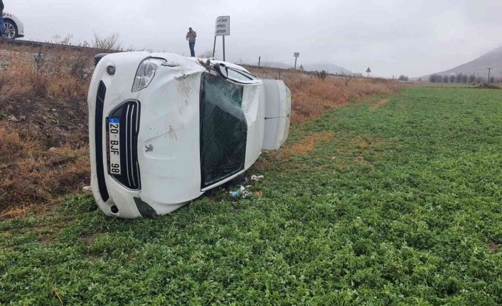 Afyonkarahisar’ın Bolvadin ilçesinde kontrolden çıkıp taklalar atarak yarım arazisine devrilen otomobilin şoförü kazayı şans eseri yara almadan atlattı.