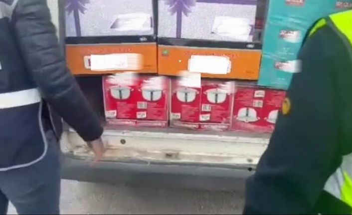 Afyonkarahisar’da polis tarafından şüphe üzerine durdurulan minibüste tencere, tava ve tabak kolilerinin içerisinde 645 bin adet doldurulmuş makaron ele geçirildi.