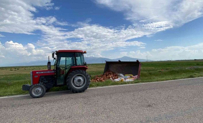 Kaza; Afyonkarahisar’ın Bolvadin ilçesi Derekarabağ köy yolu üzerinde meydana geldi. Edinilen bilgilere göre; R.K. idaresindeki 03 BG 189 plakalı traktör seyir halinde iken arpa yüklü römorkunun bağlantı demirin kopması sonucu traktör yan yattı. Kaza sonrası traktör sürücüsü R.K. ağır yaralandı. Yaralı olay yerine gelen ambulansla Bolvadin Devlet Hastanesine kaldırılarak tedavi altına alındı.