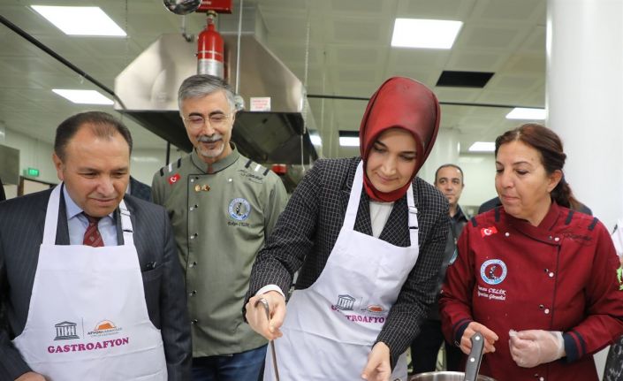 Afyonkarahisar Valisi Doç. Dr. Kübra Güran Yiğitbaşı, giyindiği aşçı önlüğü ile ocağın başına geçip aşçılık sınıfı öğrencileri ile yemek yaptı.