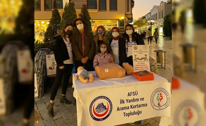 Afyonkarahisar Sağlık Bilimleri Üniversitesi (AFSÜ) öğrencileri, bir AVM’ye kurdukları stantta vatandaşlar temel yaşam desteği konusunda bilgilendirdi.