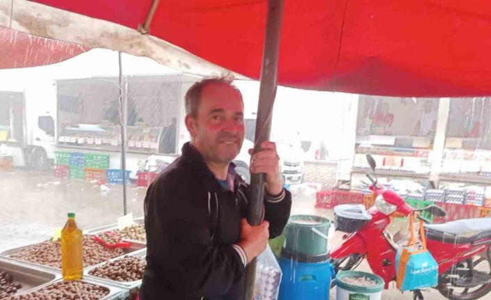 Afyonkarahisar’da kurulan semt pazarında sağanak yağışa hazırlıksız yakalanan pazarcı esnafı zor anlar yaşadı.