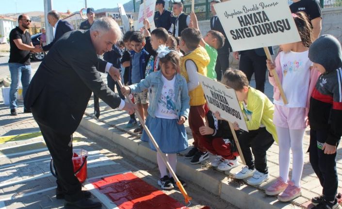 Yaya geçidini protokol üyeleri öğrencilerle birlikte boyadı