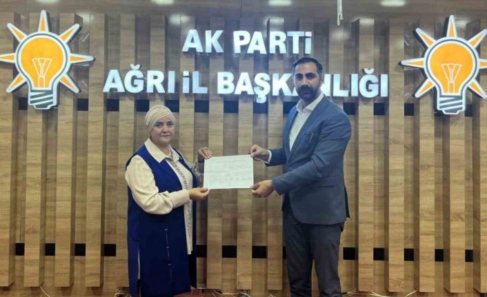 AK Parti Ağrı Merkez İlçe Başkanı Ömer Tahtalı, hayatını kaybeden Selim Alpaslan’ın yerine Belediye Meclis Üyeliği’ne atanan Besra Şimşek’e mazbatasını verdi.