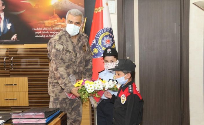 Ağrı İl Emniyet Müdürü Nihat Özen, korona virüs (Covid-19) tedbirleri kapsamında uygulanan sokağa çıkma kısıtlaması nedeniyle 23 Nisan Ulusal Egemenlik ve Çocuk Bayramı’nda makamını teslim edemediği Merkez Mustafa Kemal Atatürk İlkokulunda öğrenim gören 1‘inci sınıf öğrencisi Mithatcan Akyol ve Merkez Özel Eğitim Uygulama Okulunda öğrenim gören otizmli 1’inci sınıf öğrencisi Adem Doğan’a sürpriz yaparak öğrencileri makamına davet etti. İl Milli Eğitim Müdürü Mehmet Faruk Tekin, sınıf öğretmenleri ve polis üniforması giyen Mithatcan Akyol ve Adem Doğan ile birlikte İl Emniyet Müdürü Nihat Özen’i makamında ziyaret etti. Öğrencilerin çiçek takdim ettiği Özen, teşekkür ederek makamını öğrencilere devretti. İl Emniyet Müdürü Özen, Mithatcan Akyol’a 1. sınıf emniyet müdürü rütbe apoleti, Adem Doğan’a da başkomiser rütbe apoleti takarak çeşitli hediyeler verdi. Özen, daha sonra öğrencileri trafik aracına bindirerek anons yaptırdı. Trafik polisi tarafından öğrencilere trafik kuralları da anlatıldı. Öğrenciler, trafik polisleri ile birlikte yol uygulamalarına katılarak unutulmaz anlar yaşadı. Trafik polisleri, daha sonra öğrencileri evlerine bıraktı. İl Emniyet Müdürü Özen’e yaptığı sürprizden dolayı teşekkür eden öğrenciler, polis olmak istediklerini söylediler.