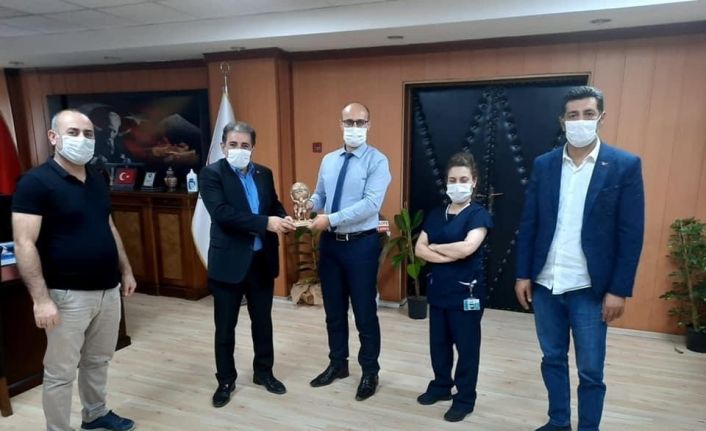 Ağrı Sağlık Sen Kurulu Başkanı Fevzi Mağal, korona virüsle mücadele kapsamında göstermiş olduğu performanstan dolayı İl Sağlık Müdürü Op. Dr. Coşkun Daharlı’ya teşekkür ödülü verdi.