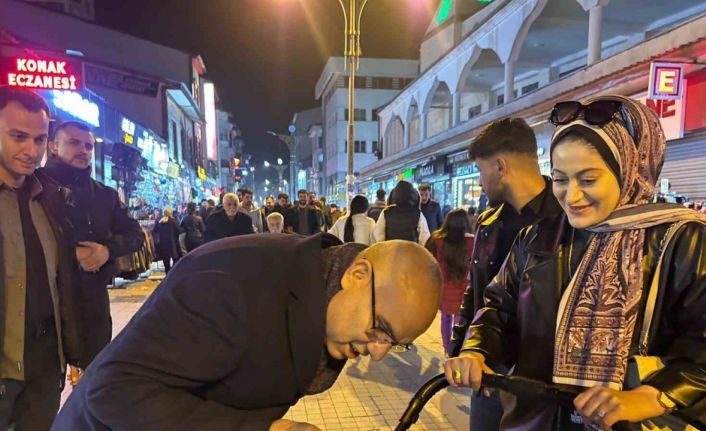 Ağrı Valisi Mustafa Koç, Ramazan Bayramı öncesinde Cumhuriyet Caddesi’nde alışveriş yapan vatandaşlarla bir araya geldi.