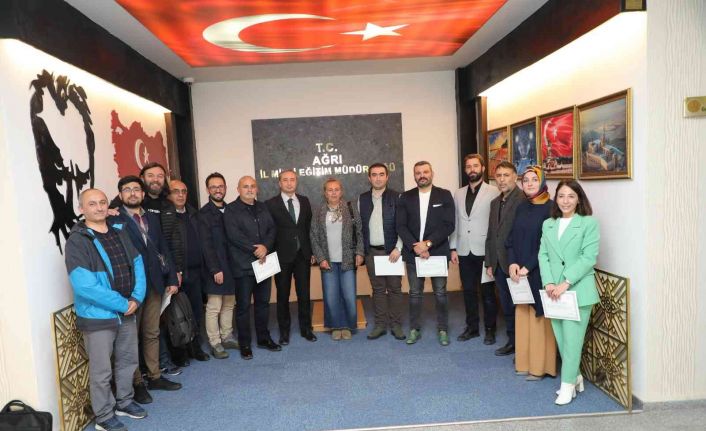 Ağrı İl Milli Eğitim Müdürü Hasan Kökrek, ikincisi düzenlenen "Eğitimde İyi Örnekler" yarışmasına başvuran öğretmenlerin projelerini değerlendiren akademisyenlere teşekkür belgesi verdi.