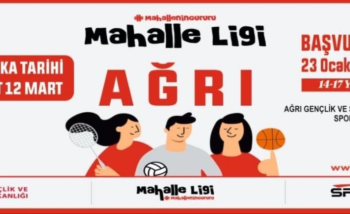 Badminton, basketbol ve voleybol branşlarından oluşan “Mahalle Ligi” spor etkinliği 27 Şubat-12 Mart 2023 tarihleri arası Ağrı ’da oynanacak.