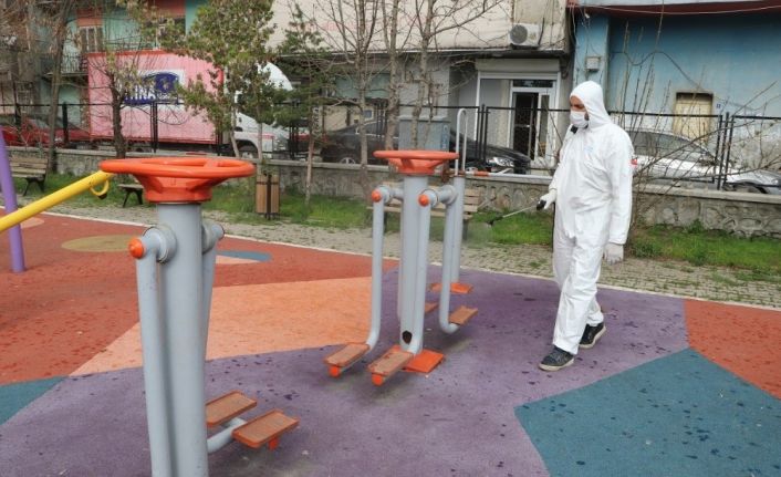 Ağrı Belediyesi salgın hastalık tedbirleri kapsamında sokağa çıkma kısıtlaması bulunan ve normalleşme planına göre haftada bir gün 11.00 ile 15.00 saatleri arasında yürüme mesafesiyle dışarı çıkabilecek olan 0-14 yaş grubu çocuklar için kent merkezi içerisinde bulunan parklarda dezenfekte işlemi yaptı.
