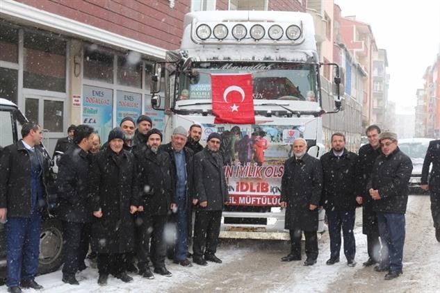 Ağrı İl Müftülüğü ve Diyanet Vakfı Ağrı Şubesi öncülüğünde hayırseverlerin destekleriyle temin edilen insani yardım malzemelerinin yüklendiği tır, Suriye’nin İdlib kentindeki savaş mağdurlarına ulaştırılmak üzere yola çıktı.