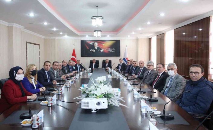 YÖK’ün genç üniversiteler ile deneyimli üniversiteleri bir araya getirdiği Anadolu Projesi çerçevesinde paydaş olan AİÇÜ ile Ankara Üniversitesi arasındaki dördüncü toplantı için Ağrı’ya gelen Ankara Üniversitesi Rektörü Prof. Dr. Necdet Ünüvar’ın yanı sıra program çerçevesinde yer alan İstanbul Teknik Üniversitesi (İTÜ) Rektörü Prof. Dr. İsmail Koyuncu, Gazi Üniversitesi Rektörü Prof. Dr. Musa Yıldız ve beraberindekiler, AİÇÜ Rektörü Prof. Dr. Abdulhalik Karabulut tarafından misafir edildi.