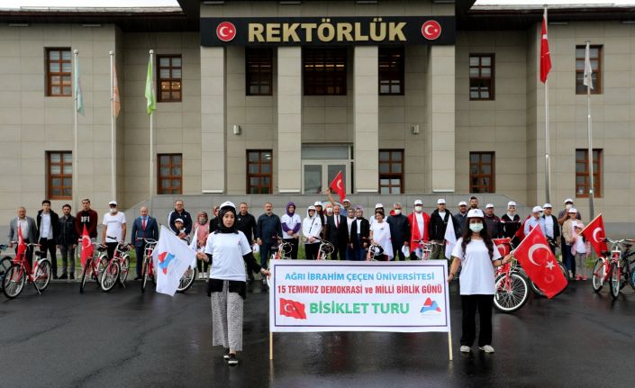 Ağrı İbrahim Çeçen Üniversitesi’nde (AİÇÜ) 15 Temmuz Demokrasi ve Milli Birlik Günü kapsamında, Al bayraklarla bisiklet turu düzenlendi.