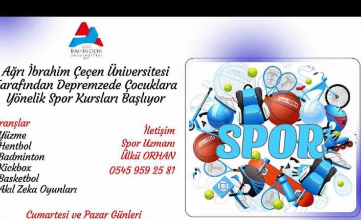Ağrı İbrahim Çeçen Üniversitesi tarafından, Kahramanmaraş merkezli 11 ilimizi etkileyen depremin ardından Ağrı’ya gelen depremzede çocuklara çeşitli branşlarda spor kursları düzenlenecek.