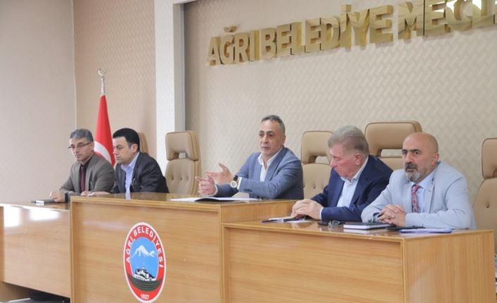 Ağrı Belediye Başkanlığına seçilen Metin Karadoğan, Belediye Birim Müdürleriyle ilk toplantısını Meclis toplantı salonunda yaptı.