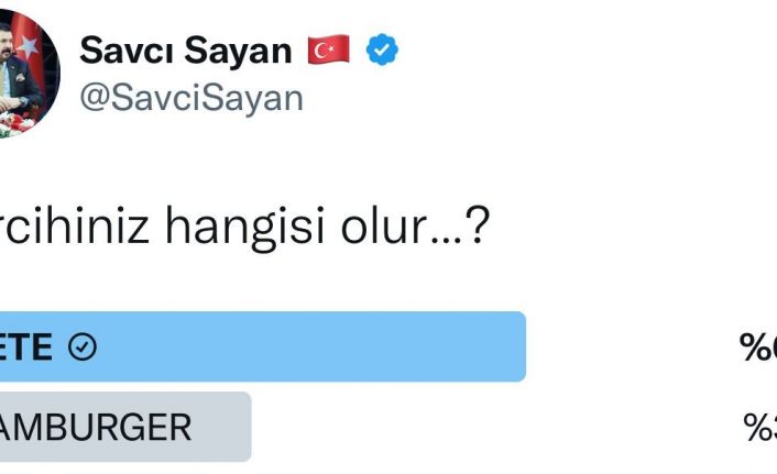 Ağrı Belediye Başkanı Savcı Sayan’ın sosyal medya hesabı üzerinden yapmış olduğu “kete mi, hamburger mi?” anketin sonucu belli oldu.