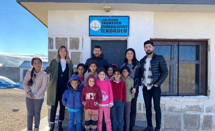 Ağrı’nın Diyadin ilçesinde gönüllüler, çocuklar için köy köy geziyor.