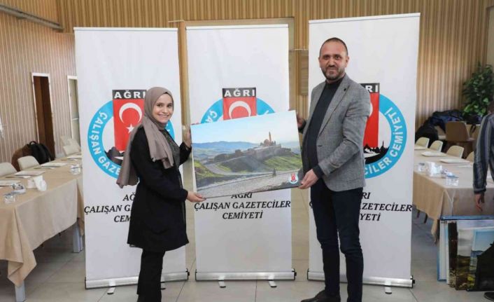 Genç yaptığı konuşmadan sonra gazetecileri kutlayarak Ağrı’nın doğal ve tarihi varlıklarının resmedildiği tablolar hediye etti. Hatıra fotoğraflarının çekilmesinin ardından program sona erdi.