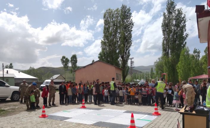 Ağrı İl Jandarma Komutanlığı trafik ekipleri, mobil trafik eğitim aracı ile gittikleri kırsal bölgelerde yaşayan ilk ve ortaokul öğrencilerine trafik eğitimi veriyor.