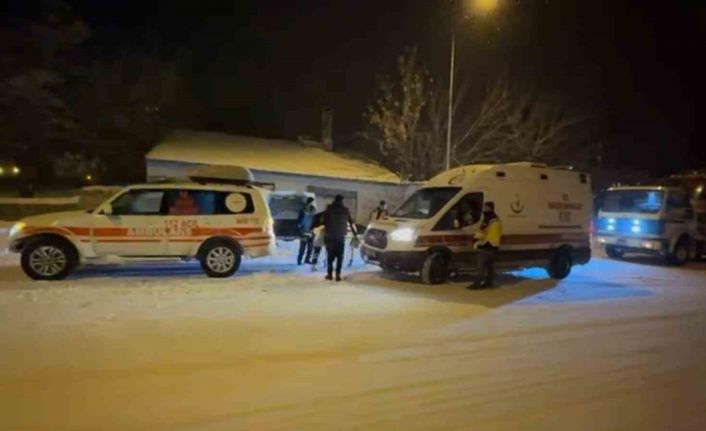 Karda mahsur kalan hastalara paletli ambulansla ulaştılar