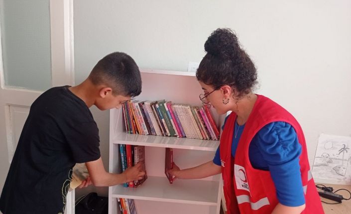 Öğrenciler, Kızılay Gönüllüleri ile birlikte kitaplarını kitaplıklarına tek tek dizdiler. Mutluluk ve heyecanları gözlerinden okunan öğrenciler Kızılay’a teşekkür etti.
