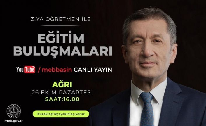 Milli Eğitim Bakanı Prof. Dr. Ziya Selçuk, "Ziya Öğretmen ile Eğitim Buluşmaları" kapsamında, 26 Ekim Pazartesi günü Ağrı’da görev yapan öğretmenler ile buluşacak.