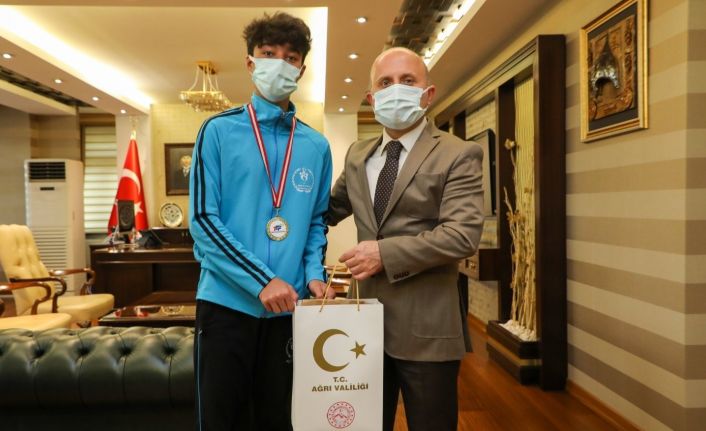 Vali Osman Varol, 20-23 Mayıs tarihleri arasında Şırnak’ta 14 ilden 101’i erkek, 38’i kadın toplam 139 sporcunun katılımıyla düzenlenen Cudi Cup Ulusal Tenis Turnuvası final müsabakasından şampiyonluk ve ikincilik derecesi ile dönen Ağrılı sporcular Habib Anak ve Mehmet Semih Aslan ile makamında bir araya geldi. Görüşmede Gençlik ve Spor İl Müdürü İsmail Çalgan, Müdür Yardımcısı Cemil Budak ve Antrenör Fırat Balkız da yer aldı.