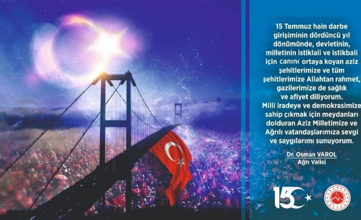 Ağrı Valisi Dr. Osman Varol 15 Temmuz Demokrasi ve Milli Birlik Günü nedeniyle bir mesaj yayımladı.