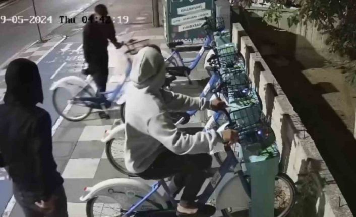 Aksaray’da belediye tarafından vatandaşların ulaşımını kolaylaştırmak amaçlı hizmete sunulan akıllı bisikletler sabaha karşı 3 kişi tarafından kilitleri kırılarak çalındı. Şahısların o anları güvelik kamerasına yansıdı.