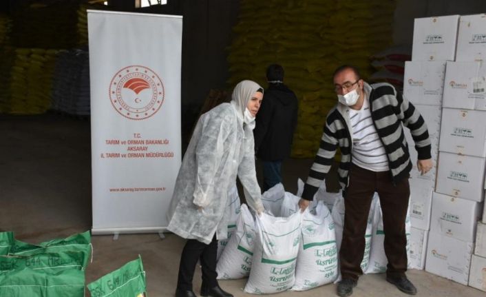 Aksaray’da İl Tarım ve Orman Müdürlüğü tarafından çiftçilere kuru fasulye ve mısır tohumu dağıtıldı.