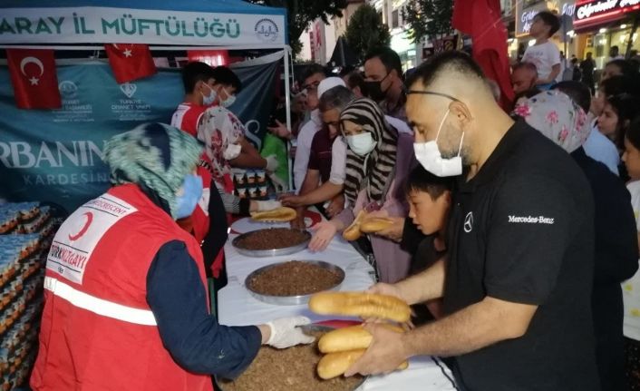 15 Temmuz hain darbe girişiminin yıl dönümü nedeniyle Aksaray’da Kızılay şubesi tarafından şehitlerin ruhu için vatandaşlara yemek dağıtıldı.