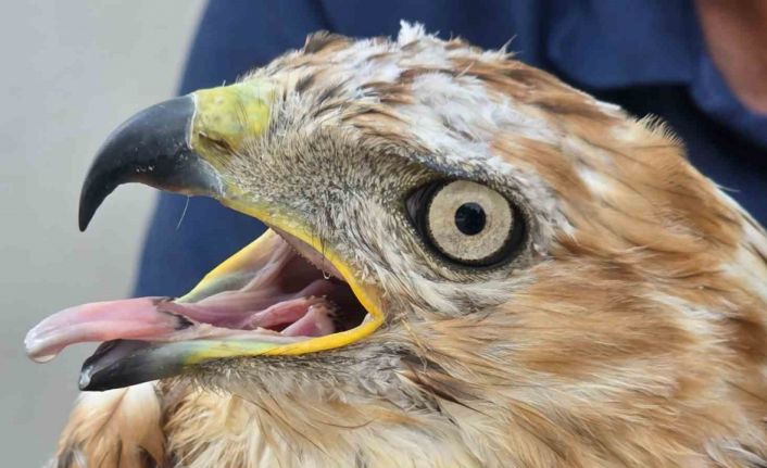 Aksaray’ın Eskil ilçesinde nesli tehlike altında bulunan kızıl şahin, Tuz Gölü’nde yaralı halde bulundu.