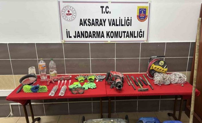 Edinilen bilgiye göre, Aksaray’ın Ağaçören ilçesinde kaçak kazı yapıldığı bilgisine ulaşan Ağaçören İlçe Jandarma Komutanlığı ekipleri, Aksaray Cumhuriyet Başsavcılığı koordinesinde harekete geçti. Bahse konu bölgede pusuya yatan jandarma ekipleri bölgeyi 2 gün boyunca takibe aldı. Takipte 3 ayrı şüphelinin kimliğini de belirleyen jandarma ekipleri yapılan teknik ve fiziksel takibin ardından yeterli delile ulaşarak operasyon için düğmeye bastı. Boş arazide yapılan operasyonda 3 şahısta kaçak kazı yaptıkları esnada kazı malzemeleri ile birlikte suçüstü yakalandı. Şahıslar gözaltına alınırken olay yerinde yapılan aramada 1 adet jeneratör, 1 adet delici, 6 adet delici ucu, 1 adet çekiç, 1 adet toz gözlüğü, 1 adet kürek, 1 adet silikon tabancası, 3 adet silikon, 5 çift inşaat eldiveni, 1 adet süzgeç, 1 adet fırça, 1 adet 10 metre 4’lü uzatma kablosu, 50 metre kablo, 37 litre asit ve 4,5 litre benzin ele geçirildi. Şüpheliler sorgulanmak üzere jandarma komutanlığına götürülürken olayla ilgili tahkikat başlatıldı.