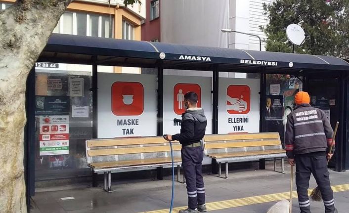 Amasya Belediyesi ekipleri, korona virüs (Kovid-19) salgınıyla mücadele kapsamında sokaklarda ve ortak kullanım alanlarındaki dezenfekte çalışmalarına tüm hızıyla devam ediyor.