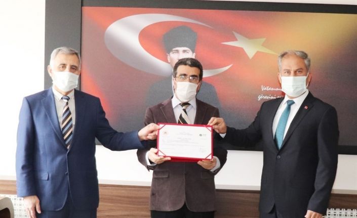 Rektör Yardımcıları Prof. Dr. Recep Kürkçü, Prof. Dr. Halil Apaydın ve Sıfır Atık Komisyon Başkanı Çetin Alpaslan, ziyaret ettikleri İlahiyat Fakültesi Dekanı Prof. Dr. Şuayip Özdemir’e temel seviye sıfır atık belgesini teslim ettiler.