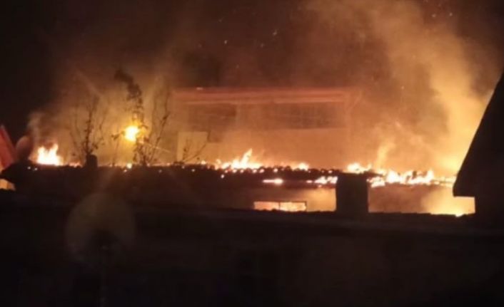 Amasya’da elektrik kontağından çıkan yangında iki katlı ahşap ev alev alev yandı.