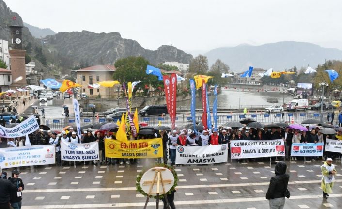 Amasya’da 1 Mayıs Emek ve Dayanışma Günü kutlamalarının adresi ise Yavuz Selim Meydanı’ydı. Sağanak yağmur altında şemsiyelerle gerçekleştirilen miting de 1 Mayıs tertip komitesi tarafından konuşmaların yapılmasının ardından yağmur altında söylenen türkülerle halay çekildi. Sağlık Emekçileri Sendikası Başkanı Satılmış Ayan, "Olumsuz hava şartlarına rağmen alanları dolduran, bu güzel günü kutlayan tüm arkadaşlara selam olsun" dedi.