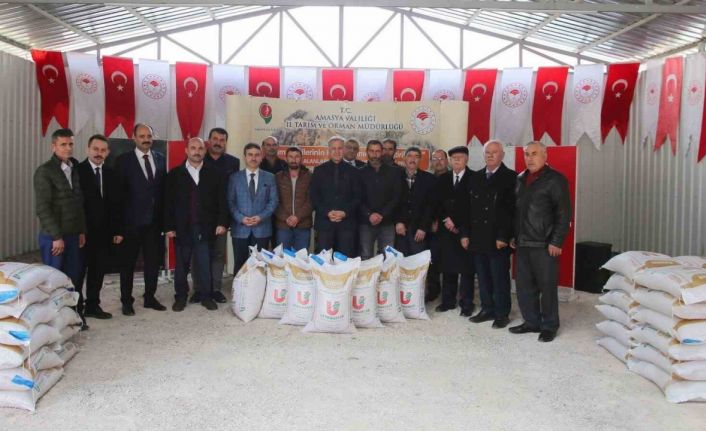 Amasya’da uygulanan ’Kuru tarım alanlarında nohut yetiştiriciliği projesi’ çerçevesinde 400 çiftçiye 44,1 ton nohut tohumu dağıtıldı.