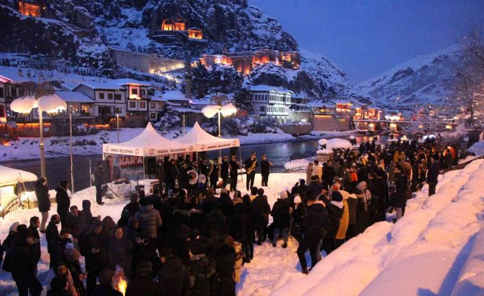 Amasya’da son 40 yılın en yoğun kar yağışı Amasya Belediyesi’nin düzenlediği coşkulu konserle kutlandı. Etkinliğe katılanlara sucuk ekmek dağıtıldı.