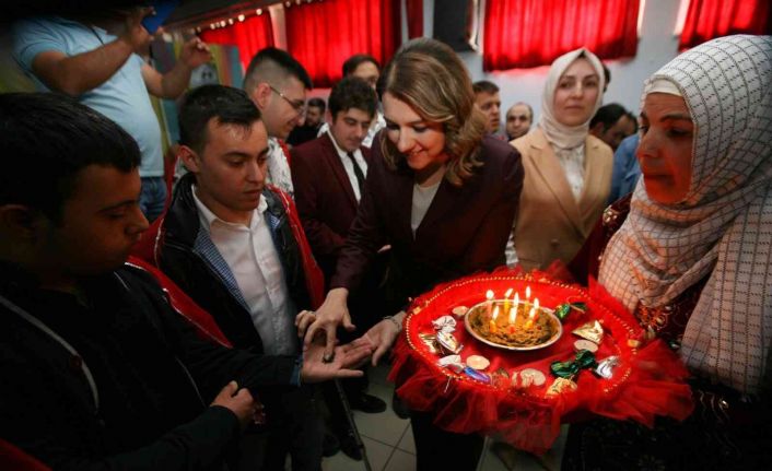 Amasya’da askeri birlikte temsili askerlik yapacak engellilerin asker kınalarını Vali Mustafa Masatlı’nın eşi Esra Masatlı yakarak gurur dolu anlarına ortak oldu.