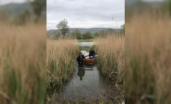 Gölette germe ağ ile sazan avlarken jandarmaya yakalandılar