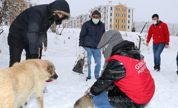 Zabıta ekipleri ve gençlik merkezi liderleri kar yağışı nedeniyle yiyecek bulmakta zorlanan sokak hayvanlarını elleri ile besledi.