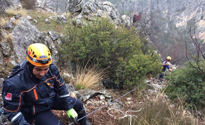 Amasya’da kayalıklarda mahsur kalan keçi AFAD ekipleri tarafından kurtardı.