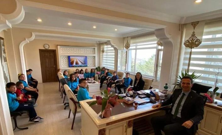 Suluova Kaymakamı Şafak Gürçam, ders amacıyla ziyaretine gelen öğrenciler için makam odasını adeta sınıfa çevirdi. Küçük konuklarına göreviyle ilgili bilgiler vererek sorularını yanıtladı.